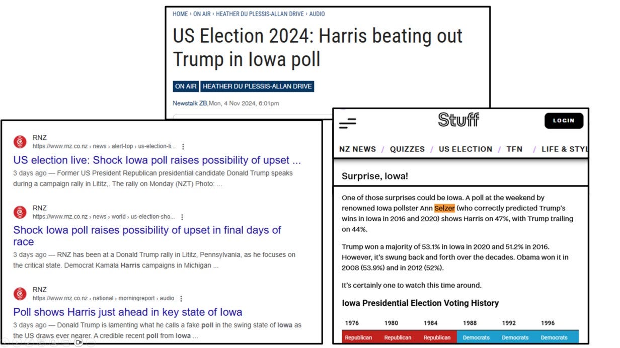 Our NZ media also. They got very excited. The proclamations were loud. Harris beating Trump. Harris ahead.