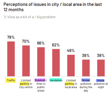 Firstly, it found that people want their councils to fix Traffic, Parking, Rubbish, Begging/homeless, Anti-social behaviour/vandalism/safety.